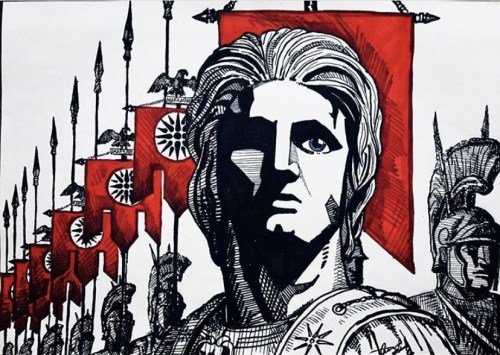 This illustration of Alexander by @stathopoulos_theodoros_ii (Instagram) is a deeply unsettling image in that it uses an artistic style redolent of Nazi art to portray the conqueror. What is the artist saying here, and about who?